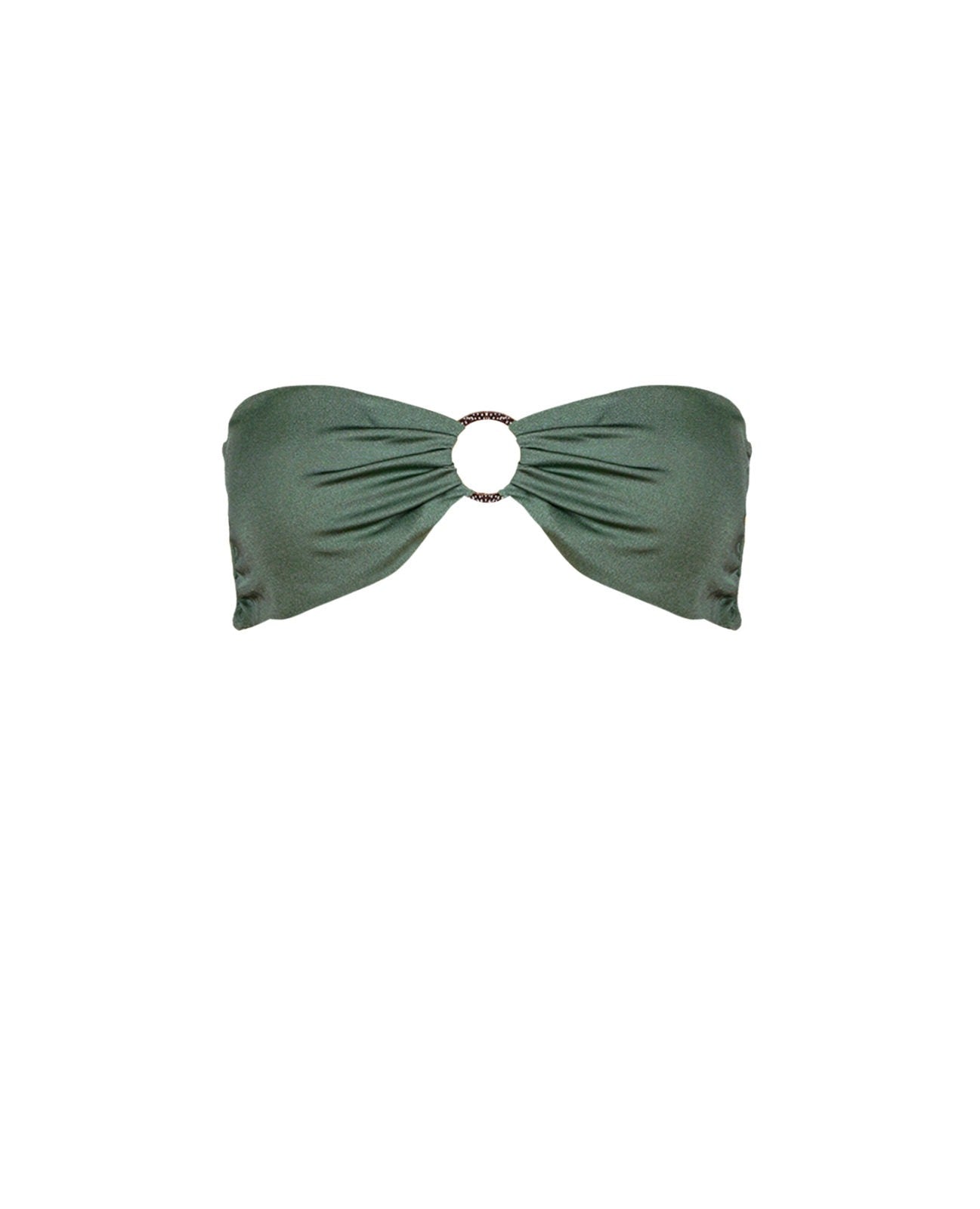 Top up your vitamin D in our classic Hazel bandeau style top with a modern twist. Our Army Green color has a soft flare of metallic which will suit every skin tone.  Team this bandeau with the matching bottoms for a complete beach babe look or mix and match it with any other bottom from our range of styles to help you achieve that streak free tan.